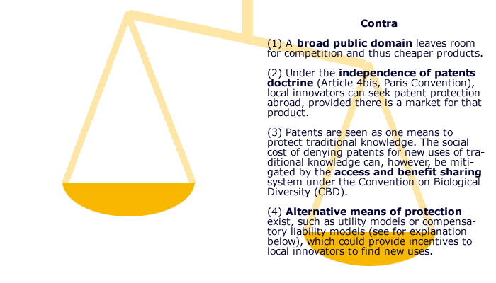 To see the arguments advanced pro and contra patents on new uses of known substances, please move your mouse over the scale below.